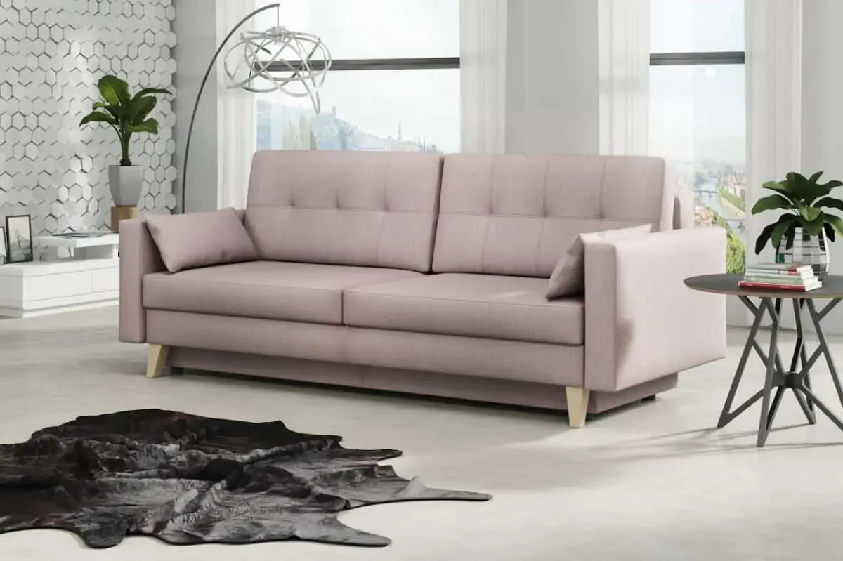 Jedná se o rozkládací sedačku s praktickým úložným prostorem, ideálním pro uskladnění ložního prádla a dalších drobností. Snadný rozklad díky modernímu mechanismu umožní vytvořit pohodlné lůžko pro občasné přespání návštěv. Sedák je vyplněný kombinací vlnitých pružin, bonellových pružin a kvalitní PUR pěny, což zajišťuje pevnou a komfortní oporu. Celý kus je celočalouněný, takže ho lze umístit i volně do prostoru. Skvěle zapadne do obývacího pokoje, pracovny či pokoje pro hosty. Vyobrazené dekorace nejsou součástí dodávky. Praktické řešení pro stylové bydlení a komfortní posezení po celý den.