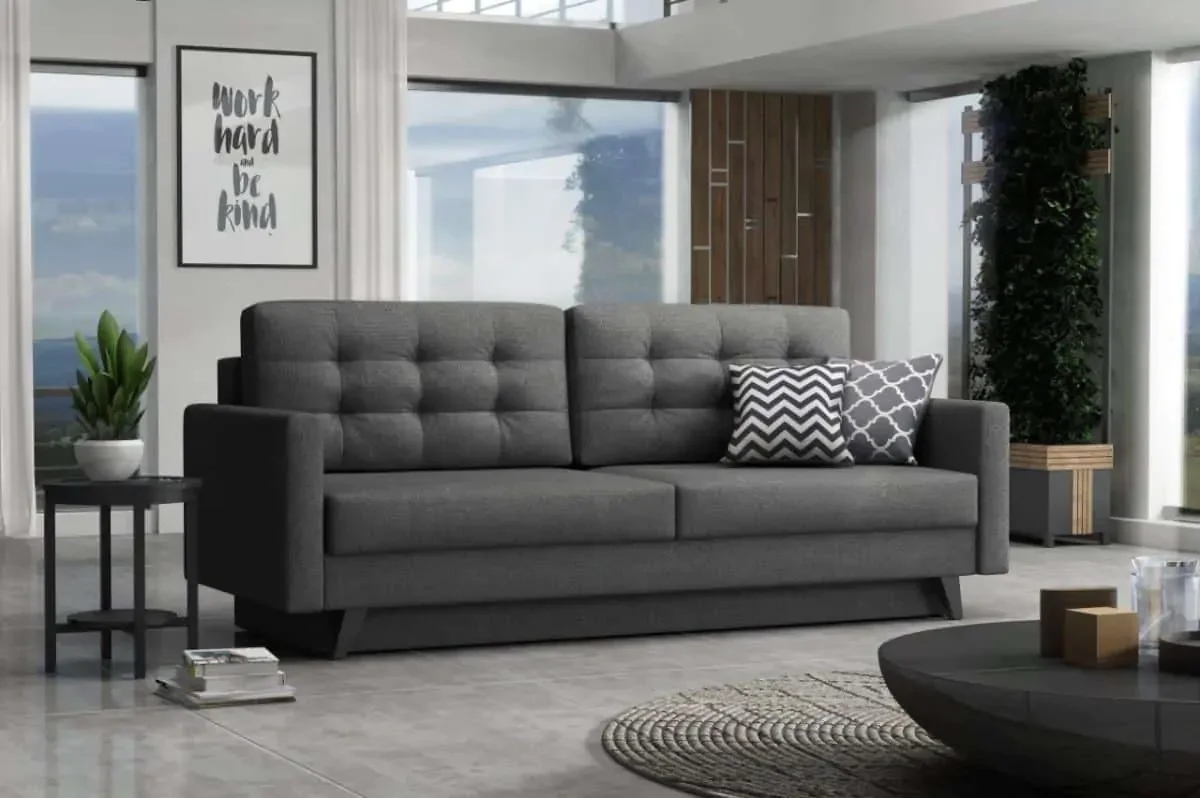 Pohovka Florencie představuje stylový retro kousek, který se hodí do každého interiéru. Je plně čalouněná a rozkládací, s praktickým úložným prostorem. Snadné rozkládání díky automatickému mechanismu vytvoří pohodlné lůžko pro hosty o ploše 144 x 200 cm. Sedák kombinuje bonellové a vlnité pružiny s kvalitní PUR pěnou, což zaručuje pevnost i komfortní sezení. Celkové provedení umožňuje její umístění i volně v prostoru; ideální volba pro obývací pokoj, pracovnu či pokoj pro hosty. Doplňky na fotografiích nejsou součástí ceny. Rozměry: šířka 225 cm, hloubka 100 cm, výška 93 cm; výška sedu 41 cm. Hmotnost 90 kg. Záruka 2 roky. Rozkládací plocha: 144 x 200 cm.