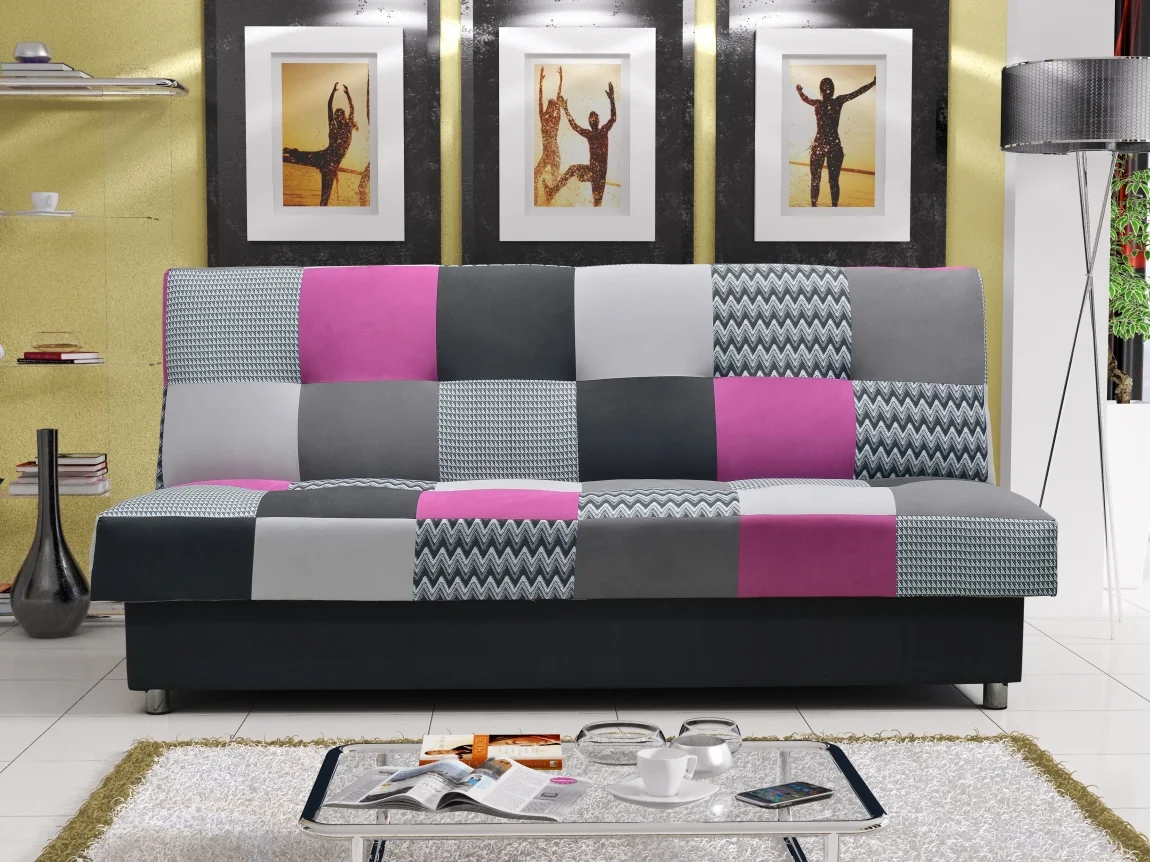 Pohovka FRAXINI 3 je praktická rozkládací sedačka, která kombinuje pohodlí s úložným prostorem. Potahová látka v odstínu Mix fialový dodává interiéru svěží nádech a zároveň se snadno udržuje.
