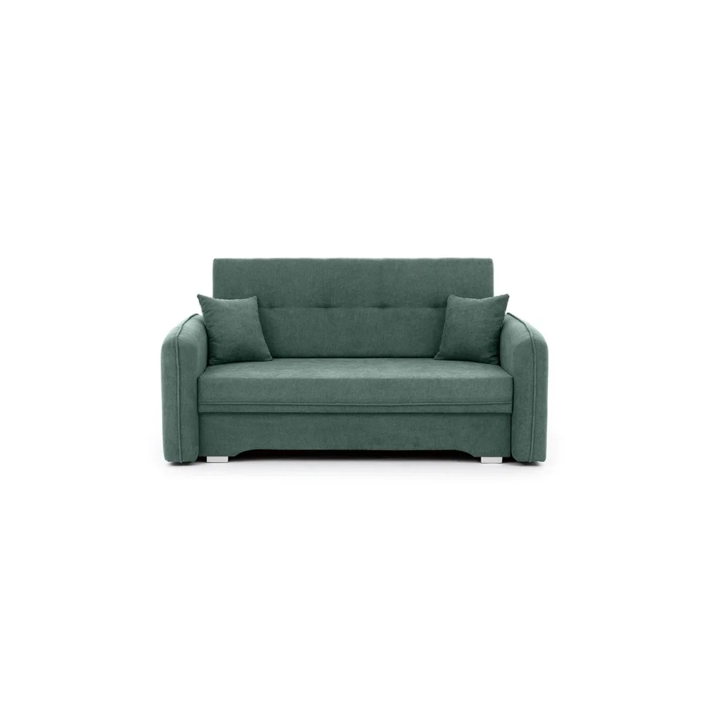 Elegantní rozkládací pohovka FULVICEPS v provedení Poco 100 – zelená nabízí stylový vzhled i praktické využití. Rozměry (šířka x výška x hloubka): 135 × 75 × 105 cm. Sedák má hloubku 64 cm, výšku sedu 38 cm a výšku opěradla 47 cm.