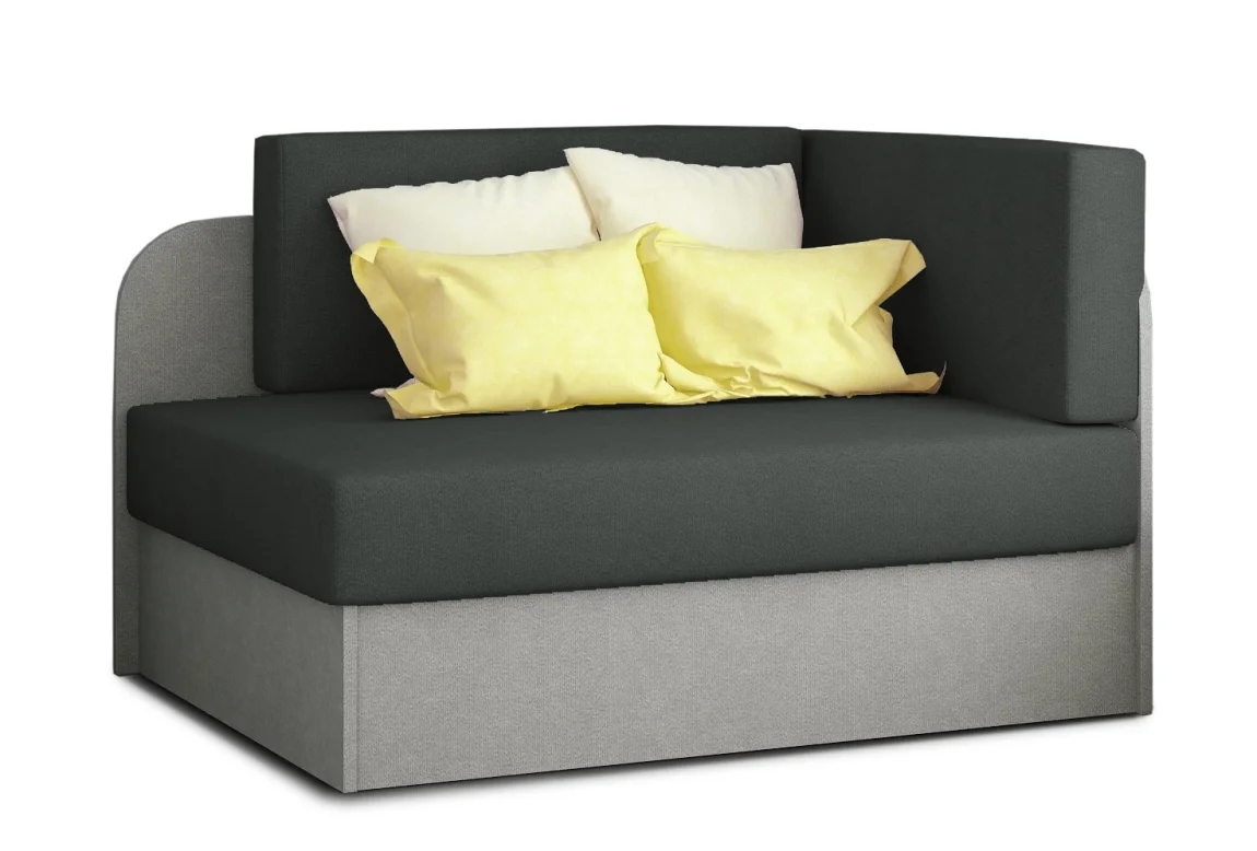 Dětská rozkládací pohovka s úložným prostorem HYSTRIX 03 spojuje pohodlí s praktickou funkcí pro dětský pokoj. K dispozici je v dvou látkových provedeních: Alova 48 tmavě šedá a Alova 10 světle šedá.