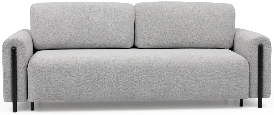 Elegantně čalouněná rozkládací pohovka s úložným prostorem nabízí pohodlí během dne i spánek pro hosty. Potah v tmavě šedé látce Royal 04 doplňuje dřevěné nožky a zaručuje dlouhou životnost.