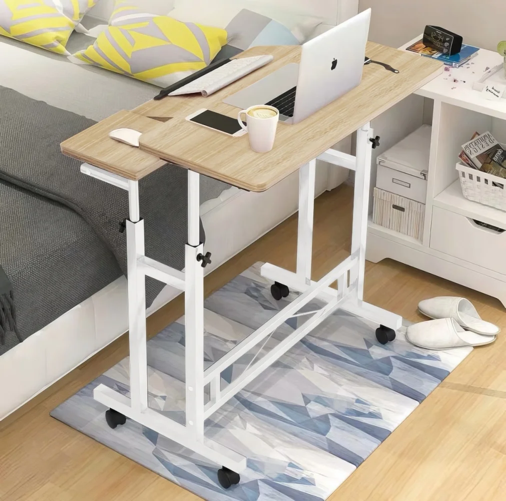 Praktický pojízdný stolek CALCAREA je ideální volba pro menší prostory, kde slouží jako kompaktní pracovní stolek pro notebook a psaní. Výška pracovní plochy je nastavitelná až do 90 cm, takže ji snadno přizpůsobíte vlastnímu posezení. Stolek kombinuje MDF horní desku s kovovým rámem a v kombinaci bílé barvy s dekórem dřeva působí moderně a nadčasově. Rozměry (š x v x h): 80 × 90 × 58 cm. Dodáváno v demontu pro lehkou manipulaci a pohodlnou montáž doma. Díky ergonomickému designu se hodí k sedačce, k posteli i do menších pracovních koutů a podporuje pohodlné a zdravé sezení při práci.