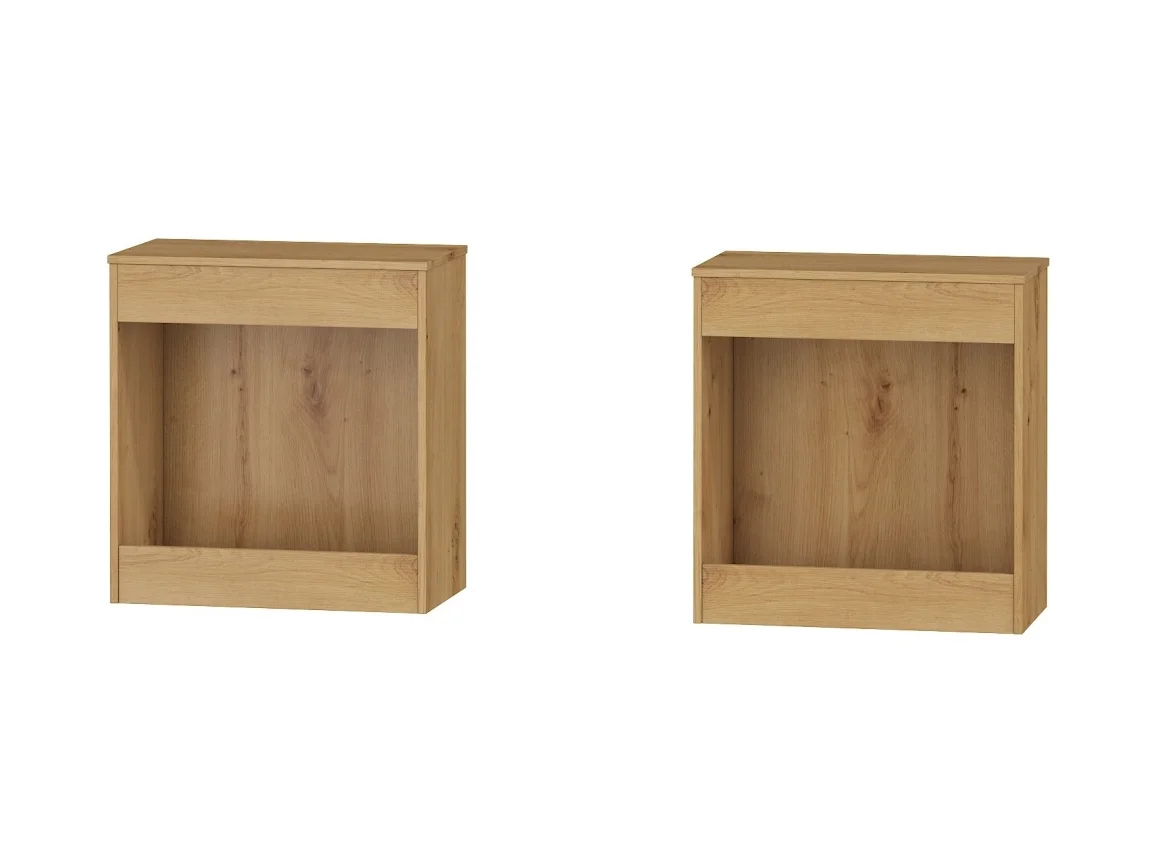 Police Gatton, sada dvou polic v provedení dub artisan. Rozměry jedné police: 40 × 42 × 22 cm. Materiál: LTD s ABS hranami, které zajišťují odolnost a čistý vzhled. Dodáváno v demontu pro snadnou přepravu a rychlou montáž.