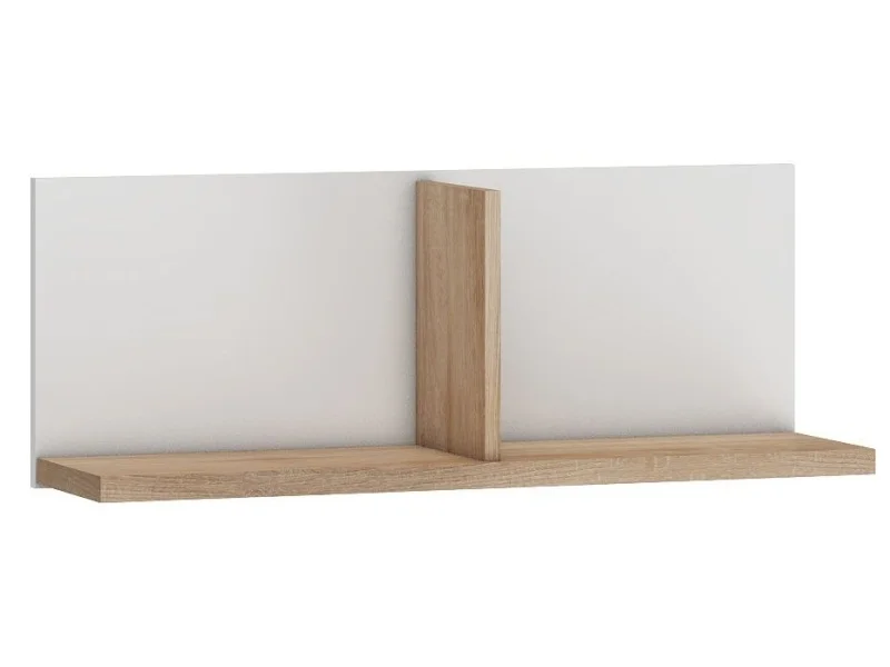 Police NELLORE je nástěnná police v barevném provedení dub sonoma/bílá, která dodá moderní vzhled každé stěně. Korpus je z lamina 25 mm, zadní stěna 16 mm a hrany z ABS 0,6 mm, což zajišťuje pevnost a dlouhou životnost.