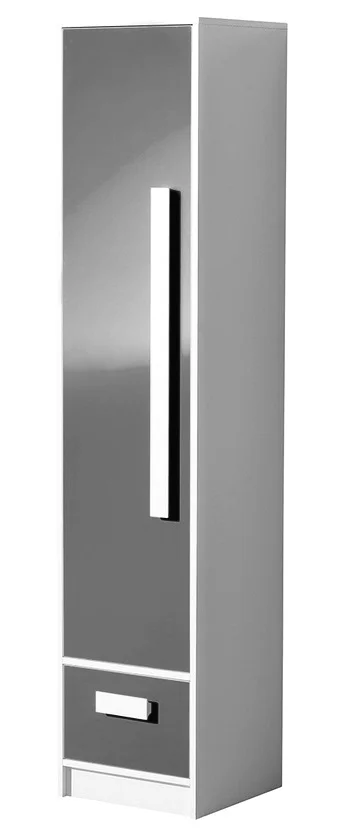 Stylová policová skříň z řady BLOURT kombinuje praktický úložný prostor s moderním vzhledem. Je vyrobena z kvalitní LTD desky s ABS hranami, korpus je v matné bílé barvě a dveře v šedém lesku. Skříň má jedny dveře a praktickou zásuvku, a díky kompaktním rozměrům 40 cm šířky a 40 cm hloubky se hodí i do menších pokojů. Výška 191 cm poskytuje dostatek vertikálního úložného místa a široká řada prvků BLOURT umožňuje sestavit kompletní nábytek pro dětský či studentský pokoj, ložnici či pracovnu podle vašich představ. Díky neutrálním barvám se skříň snadno sladí s dalším nábytkem a udrží pořádek. Praktické ABS hrany usnadňují údržbu a zajišťují delší životnost. Dodáváno v demontu. Záruka 24 měsíců.