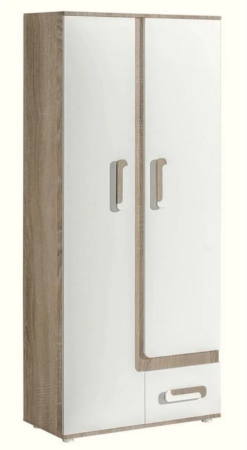 Policová skříň ORAKI III v kombinaci dub jasný a bílé matné barvy nabízí stylové i praktické řešení pro dětský, studentský i ložnicový prostor. Dvoudvéřová skříň je vyrobena z LTD desky s ABS hranou, korpus v dubu jasném a dveře v bílé matné úpravě, doplněné barevnými úchyty v odstínu dub jasný/bílá. Uvnitř najdete police a dole praktickou zásuvku pro uspořádání drobných předmětů. Rozměry skříně: výška 192 cm, šířka 85 cm, hloubka 40 cm. Díky modulárnímu systému ORAKI III lze skříň snadno kombinovat s dalšími prvky a sestavit pokoj na míru podle vašich potřeb. Dodáváno v demontu. Záruka 24 měsíců.