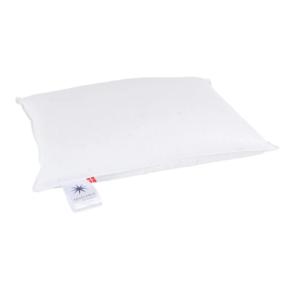 Luxusní polštář od dánské značky Universe of Sleeping je vyrobený výhradně z přírodních materiálů, které zaručují vysokou kvalitu a přirozenou pohodlí. Tento model nabízí měkkou, nadýchanou horní vrstvu z peří, která perfektně podpírá hlavu a krk, zatímco spodní část je plněná jemným drobným peřím pro maximální komfort.