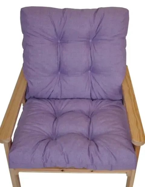 Hloubka sedací části je 47 cm a výška opěradla 48 cm. Je vyplněný drceným molitanem, který zajistí měkké, ale pevné sezení. Polstr je vyroben v České republice z kvalitní látky a vyznačuje se pečlivým zpracováním a dlouhou životností. Ideální volba pro zimní i letní venkovní využití, s atraktivním fialovým melírem dodá zahradě svěží vzhled.