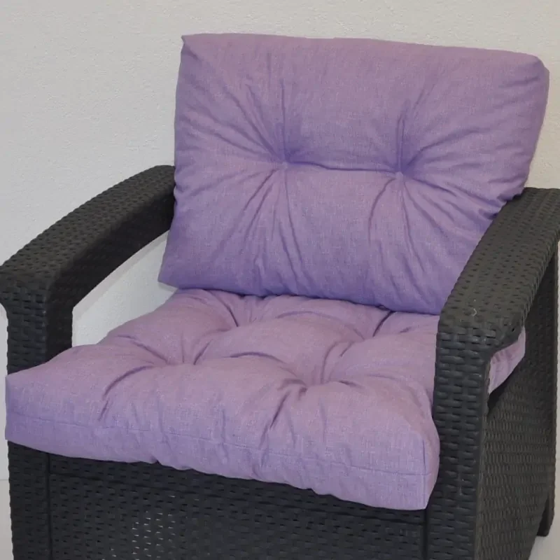 Univerzální polstr na křeslo z umělého ratanu a imitace pro plastový nábytek dodá posezení pohodlí i styl v příjemném fialovém melíru. Skládá se ze sedáku a opěrky, jejichž rozměry jsou přibližně 58x58 cm pro sedák a 58x40 cm pro opěrku.