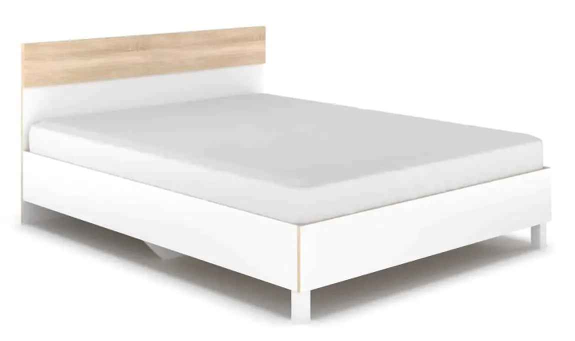 Moderní postel s šířkou 160 cm kombinuje svěží bílé plochy s dekorativním dubovým prvkem v provenienci dub sonoma, čímž do ložnice vnáší lehkost a teplý nádech. Je vyrobená z kvalitní LTD desky, která zajišťuje stabilní základ a snadnou údržbu povrchů. Do ceny nejsou zahrnuty rošt ani matrace a lze je pořídit zvlášť podle potřeby. Pro pohodlné spaní zvolte matraci o rozměrech 160 x 200 cm, nebo dva kusy 80 x 200 cm. Dodáváme v demontovaném stavu, což usnadňuje převoz i montáž. Tato kombinace materiálu a barevného provedení se skvěle hodí do moderní ložnice a snadno ji sladíte s dalšími prvky interiéru.