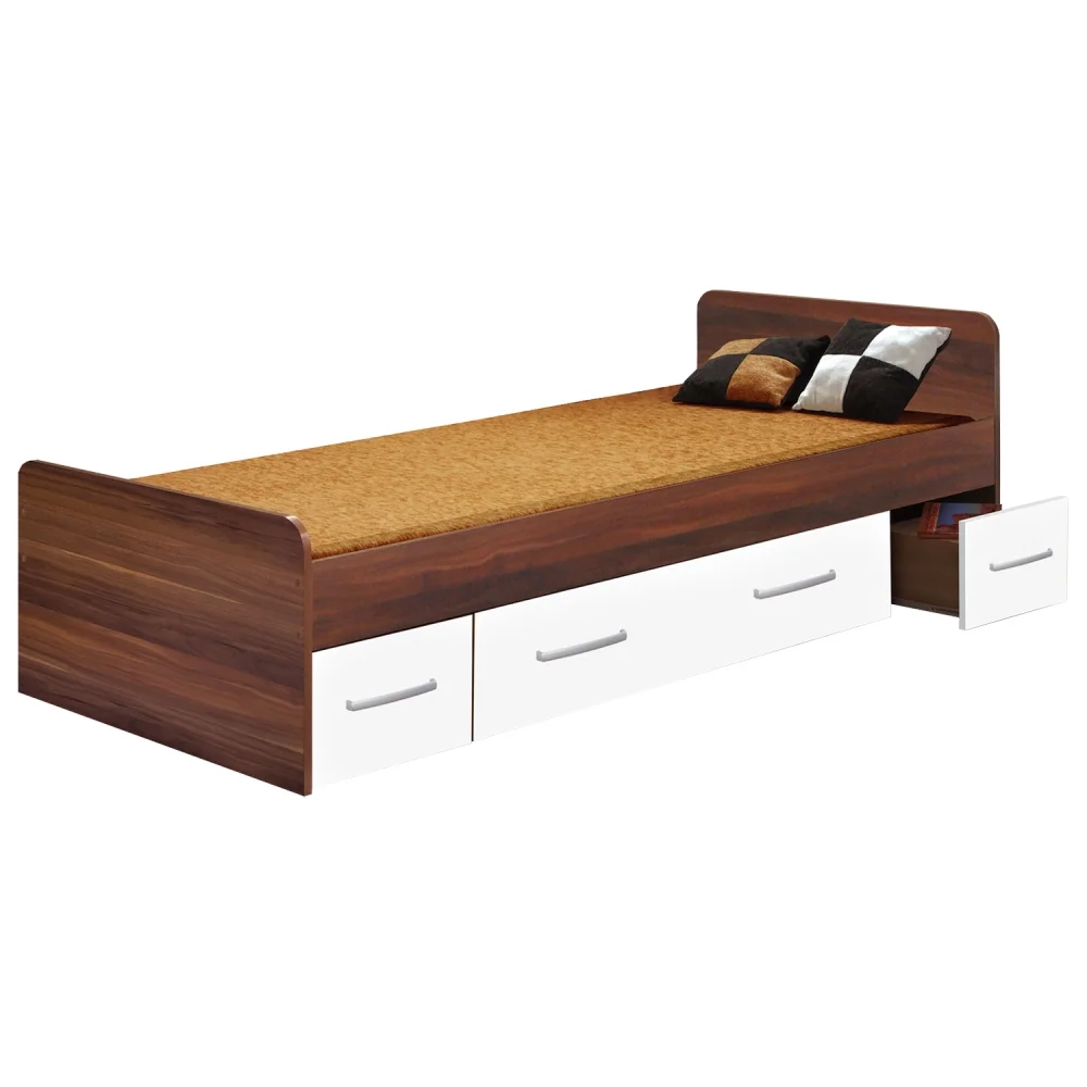 Postel ALBAY 90x200 cm se zásuvkami, ořech/bílá Postele