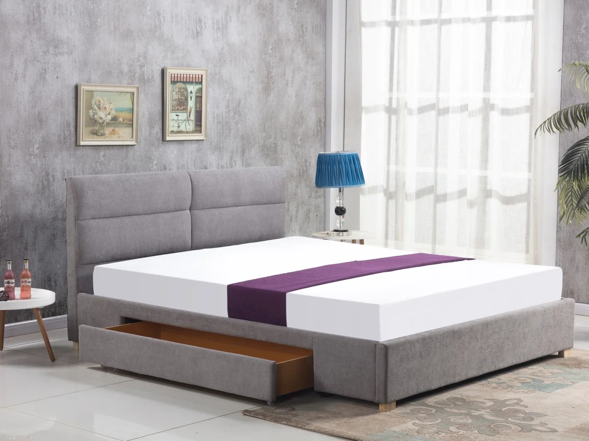 Postel GAUGUIN o rozměrech 160x200 cm se pyšní praktickým úložným prostorem díky zásuvce ve spodní části. Potahová látka v odstínu světle šedé působí elegantně a snadno se čistí. Rozměry rámu: 170 x 32/95 x 216 cm; nohy jsou vyrobeny z masivu, což zajišťuje pevnou konstrukci. Rošt je součástí balení; matraci je nutné dokoupit. Vhodný rozměr matrace je 160x200 cm, případně dva kusy 80x200 cm. Dodáváno demontované. Pro ještě lepší efekt se hodí světlá postel v kombinaci s tmavším dřevem nebo pastelovými doplňky, které podtrhnou moderní vzhled ložnice.