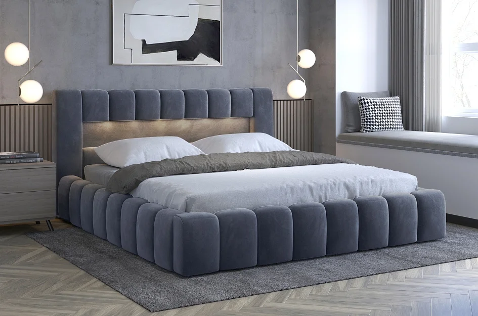 Postel HUA 09 s LED osvětlením 160×200 cm, tmavě šedá Postele