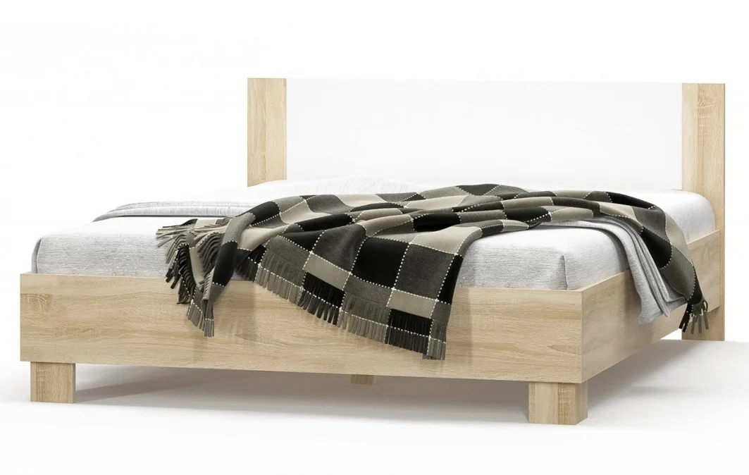 Postel s šířkou 160 cm v provedení dub sonoma s bílým akcentem působí moderně a nadčasově, a hodí se do různých stylů ložnic. Vyráběna je z kvalitní LTD desky a součástí balení je robustní rošt.