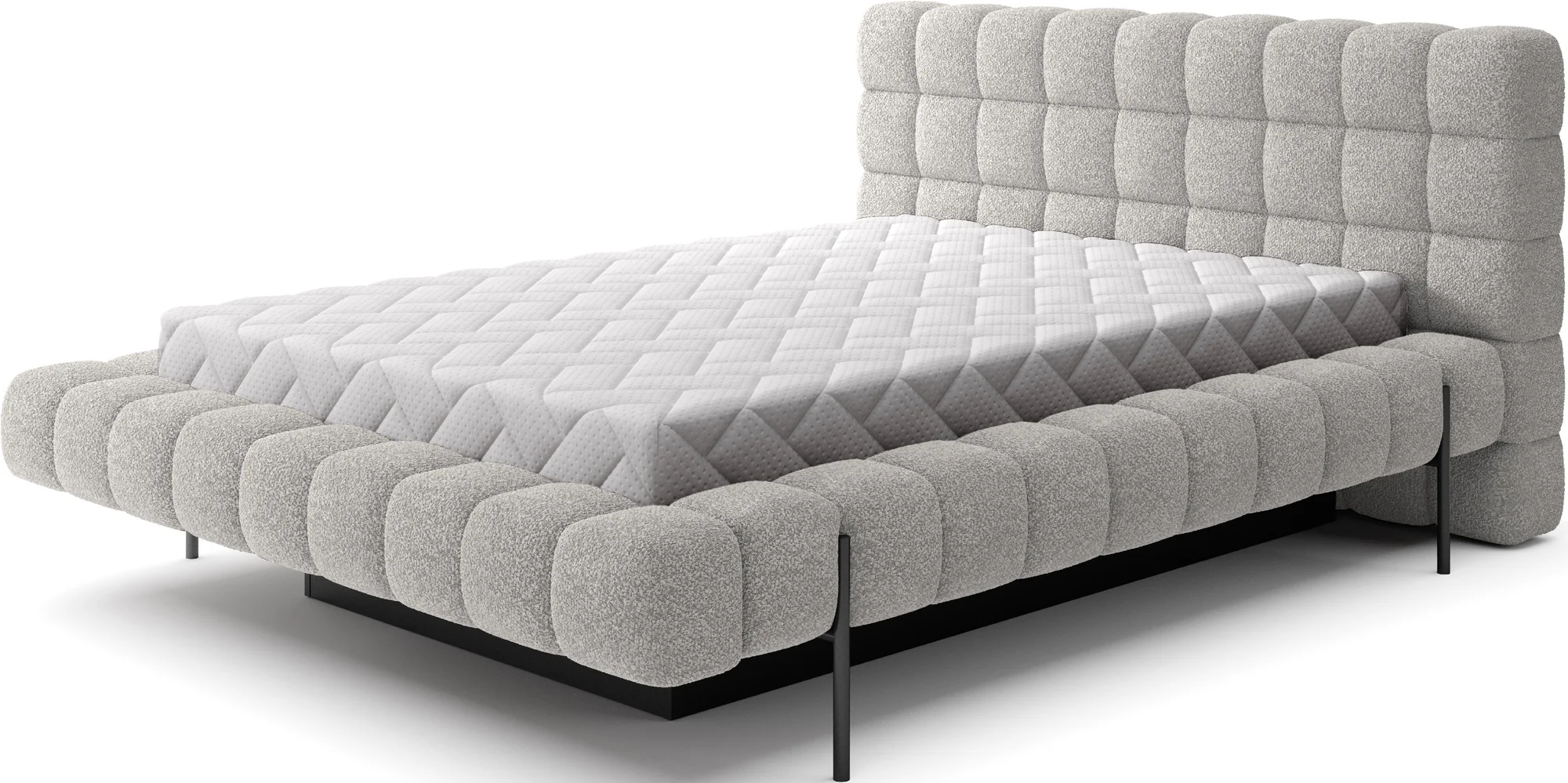Postel Magentta spojuje moderní vzhled s praktickou funkčností a díky čalouněnému čelu působí v ložnici elegantně a útulně. Pevná kovová konstrukce a kvalitní rošt poskytují stabilní oporu a s až 36 lamelami matraci rovnoměrně podpírají, čímž zvyšují komfort při spaní i odpočinku. K dispozici je ve třech šířkách – 140, 160 a 180 cm – takže ji snadno sladíte s prostorem i osobními preferencemi. Součástí je praktický úložný prostor na ložní prádlo, který usnadňuje uskladnění peřin a textilií a šetří místo v pokoji. Černé kovové nohy dodávají posteli stabilitu a moderní, minimalistický vzhled.