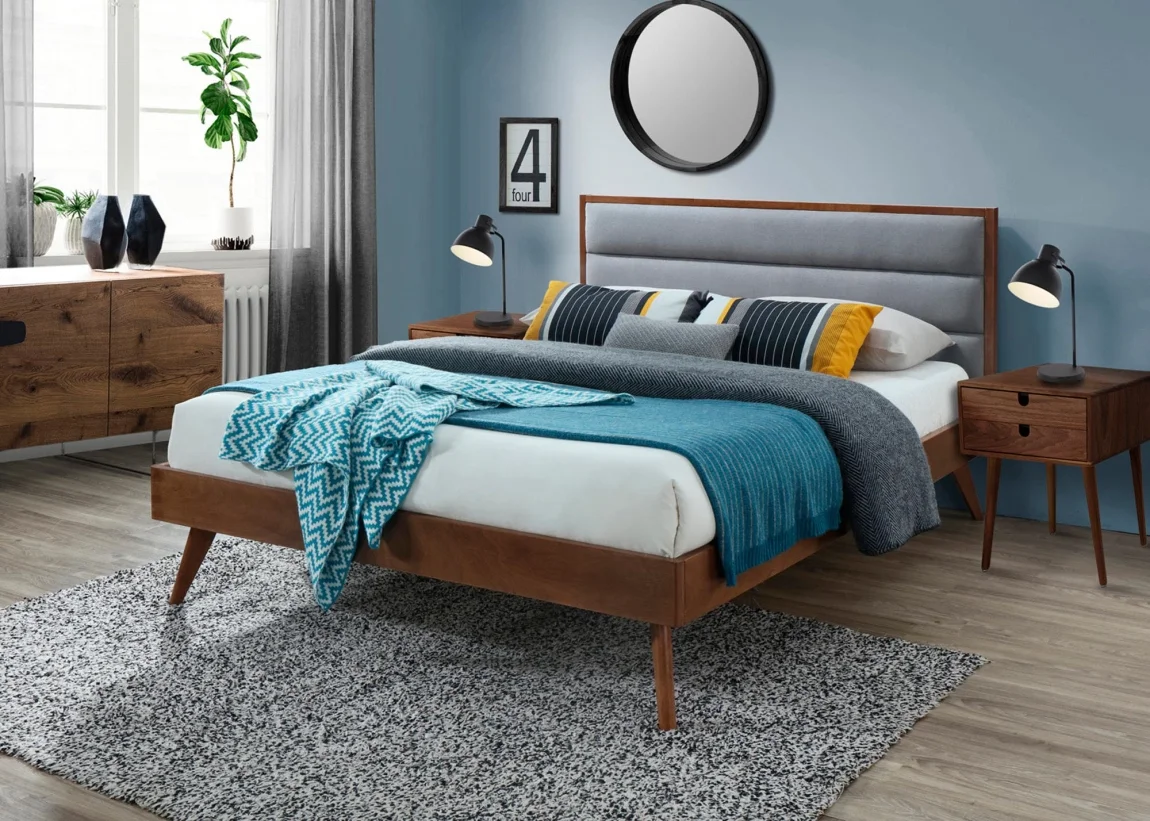 Postel MARCIANO kombinuje šedou látku s výrazným ořechovým dekorem a nabízí pohodlné spaní na ploše 160x200 cm. Rozměry rámu činí 166 x 209 x 106 cm, ložná plocha je 160x200 cm. V balení jsou rošty součástí, matrace však není součástí balení; doporučujeme matraci 160x200 cm nebo dva kusy 80x200 cm pro variabilitu. Dodání probíhá v demontu, což usnadňuje přepravu a montáž. Konstrukce kombinuje kaučukový masiv s odolnou látkou, čímž zajišťuje pevnou a stylovou postel. Záruka platí 24 měsíců.