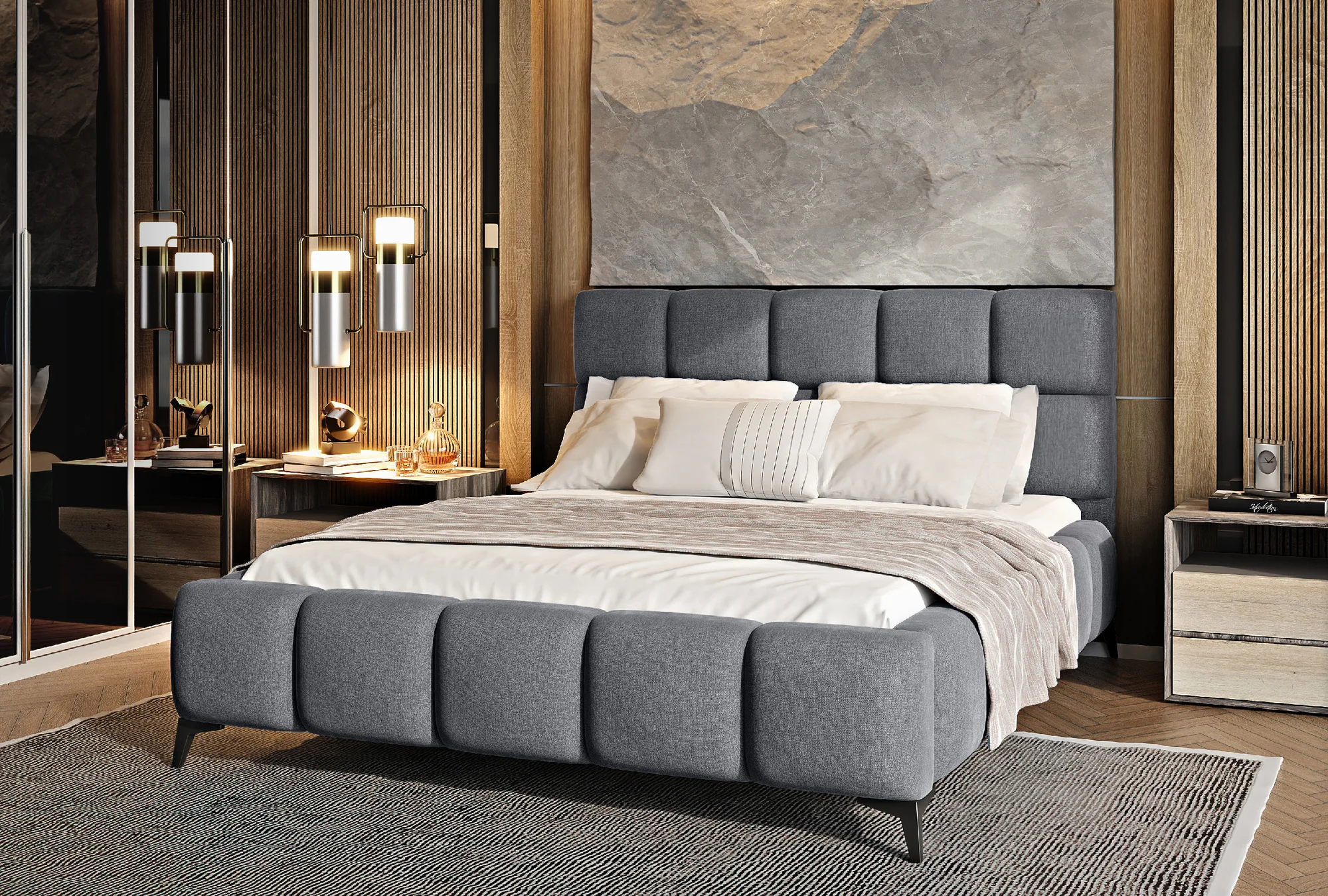 Postel Mist spojuje moderní design s prvky glamour a vytváří v ložnici atmosféru elegance. Její čelo je polstrované a čalouněné, prošívání dodává posteli šmrnc a současně jí propůjčuje výrazný charakter.