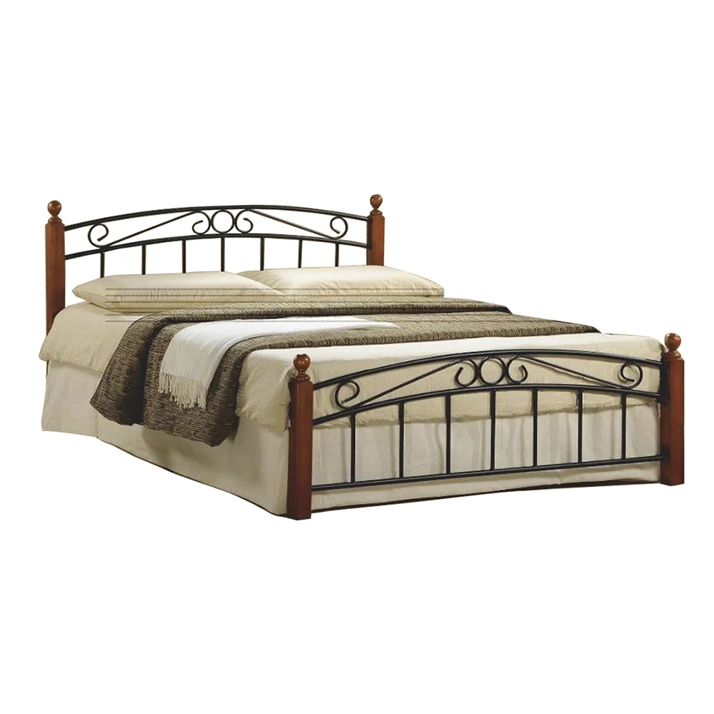Kovová postel ORCA v rozměrech 140x200 cm je dodávána s lamelovým roštem, který zajišťuje stabilní oporu a lepší prodyšnost matrace. Konstrukce kombinuje černou kovovou konstrukci s dřevěným detailem v barvě třešeň, což dodává posteli příjemný vzhled.