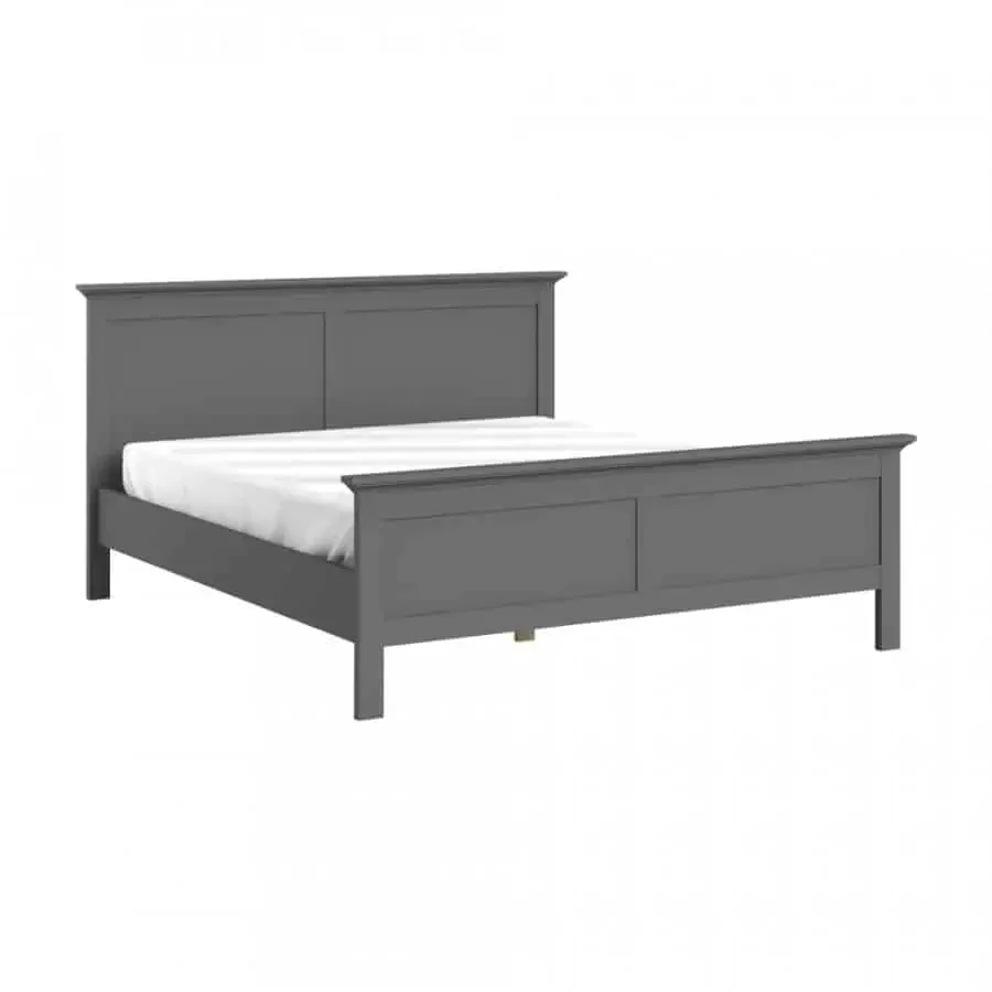 Šedá postel v romantickém venkovském stylu Provence pro rozměr 180x200 cm. Je vyrobena z laminované dřevotřískové desky a ozdobné lišty jsou z MDF, což zajišťuje pevný a elegantní vzhled.