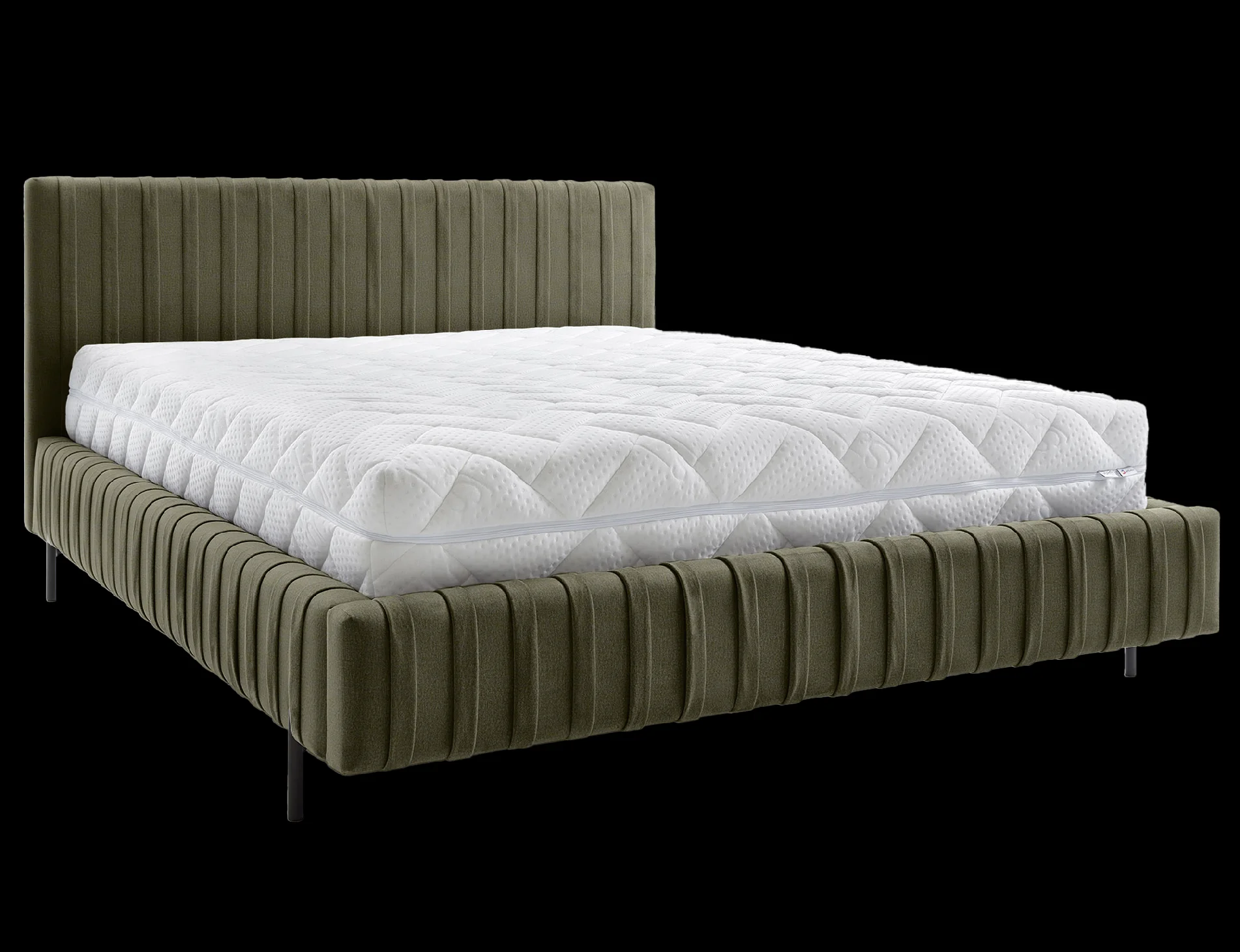 Postel Plissa představuje stylové a komfortní řešení pro vaši ložnici. Je čalouněná a stojí na pevnem kovovém rámu s stabilními nohami, což zajišťuje dlouhou životnost a jistou oporu při odpočinku. Postel se dodává bez matrace, takže si můžete vybrat přesně takový materiál a tuhost podle svých preferencí. Praktický úložný prostor uvnitř konstrukce nabízí místo pro přikrývky, polštáře či sezónní textilie a pomáhá udržet ložnici v pořádku. Celkové provedení a jemné čalounění dodávají ložnici elegantní a moderní ráz, který dokonale ladí s různými styly interiéru. Plissa je tedy ideální volba pro kombinaci estetiky a praktického využití, která vytváří harmonické a útulné prostředí pro odpočinek.
