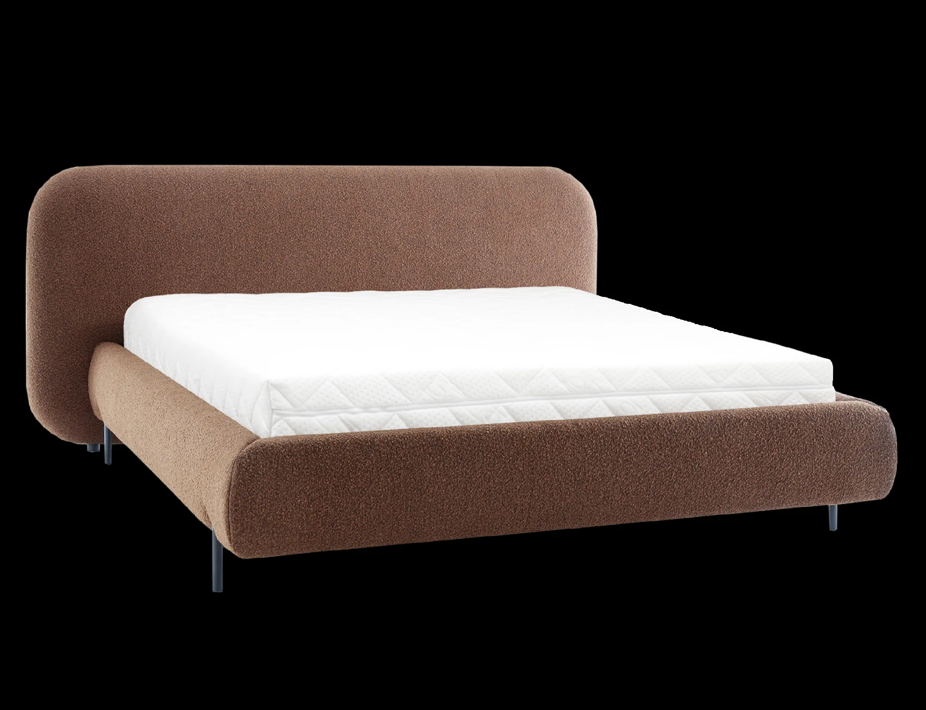 Postel Pointt kombinuje stylový design s pohodlím díky kvalitní pěně T2130, která zajišťuje dlouhou životnost a komfort při spaní. Pevný černý kovový rám a stabilní nohy dodávají posteli moderní a elegantní vzhled.