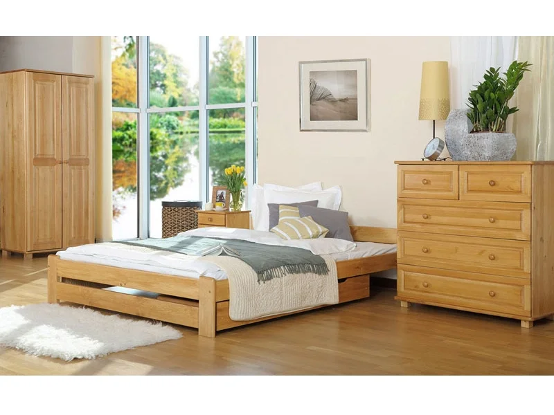 Postel RAFANUS o rozměru 120x200 cm nabízí pevný rám ze dřevěného masivu borovice s jemným mořením do odstínu olše. Obrázek slouží jen jako ilustrační ukázka – v ceně postele není zahrnut žádný úložný prostor.