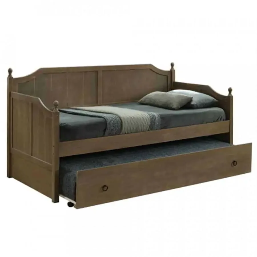 Pod postelí se skrývá výsuvná přistýlka, kterou jednoduše vysunete po uchopení dřevěných úchytů; k tomu slouží praktická vysouvací konstrukce na kolečkách. K posteli jsou součástí dva laťkové rošty a matrace nejsou součástí balení; pro pohodlí doporučujeme zvolit matrace 90x200 cm. Celkové rozměry konstrukce činí 209 x 96,3 x 107,2 cm s bočnicí vysokou 84,5 cm; vrchní lůžko i přistýlka mají rozměr 90x200 cm. Postel je dodávána v demontu a v naší nabídce najdete vhodné matrace 90x200 cm. Výhodou tohoto řešení je úspora prostoru a pohodlné spaní pro hosty díky přistýlce a pevné masivní konstrukci.