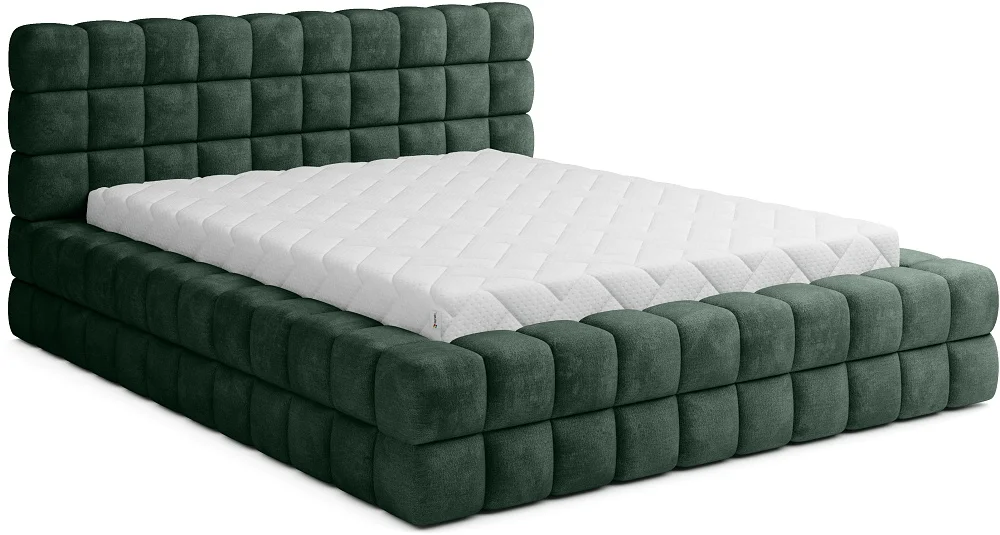 Čalouněná postel s ložnou plochou 140x200 cm nabízí pohodlné spaní a praktický úložný prostor. V ceně je rošt s kovovým rámem a úložný prostor, který šetří místo v ložnici. Povrch čalounění tvoří zelená látka Amore 35 a výplň z pěny T2130 pro komfortní ležení. Celkové rozměry postele jsou 184 x 104 x 225 cm, výška sedu činí 42 cm. Rozměry úložného prostoru jsou 142 x 23 x 204 cm a výška nožek 2 cm. Nosnost postele dosahuje 240 kg. Matrace není součástí balení a je nutné ji dokoupit. Doporučený rozměr matrace je 140x200 cm. Dodáváno v demontu.