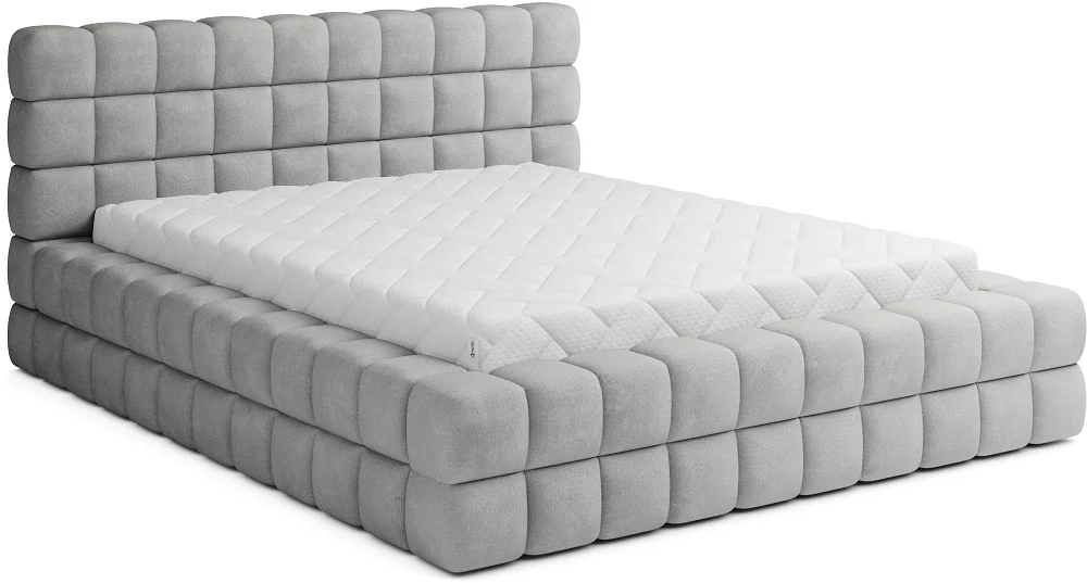 Čalouněná postel s ložnou plochou 180x200 cm nabízí pohodlné spaní v elegantním pojetí. K konstrukci patří pevný kovový rám se zabudovaným roštem a praktický úložný prostor, který v ložnici oceníte pro uskladnění. Celá postel je čalouněná šedou látkou Amore 03 a výplň tvoří pěna T2130, díky čemuž je pohodlná i odolná. Rozměry samotné stavby činí 224 x 104 x 225 cm, výška sedu je 42 cm a objemný úložný prostor zabírá 182 x 23 x 204 cm; nohy jsou vysoké 2 cm. Nosnost až 240 kg zaručuje stabilitu pro různé typy matrací a postavení. Upozorňujeme, že matrace není součástí balení a je třeba ji dokoupit; doporučený rozměr matrace pro tuto postel je 180x200 cm. Zboží je dodáváno v demontu.