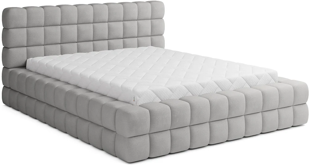Potah v jemné světlé šedé látce Touch 03 doplňuje pěnová výplň T2130 pro příjemný komfort. Rozměry rámu: šířka 224 cm, výška 104 cm, hloubka 225 cm; výška sedu 42 cm. Rozměry úložného prostoru: 182 cm na šířku, 23 cm na výšku a 204 cm na hloubku. Nohy postele mají výšku 2 cm a nosnost celé konstrukce dosahuje 240 kg. Matrace není součástí balení; doporučený rozměr matrace je 180x200 cm. Dodáváme v demontu.