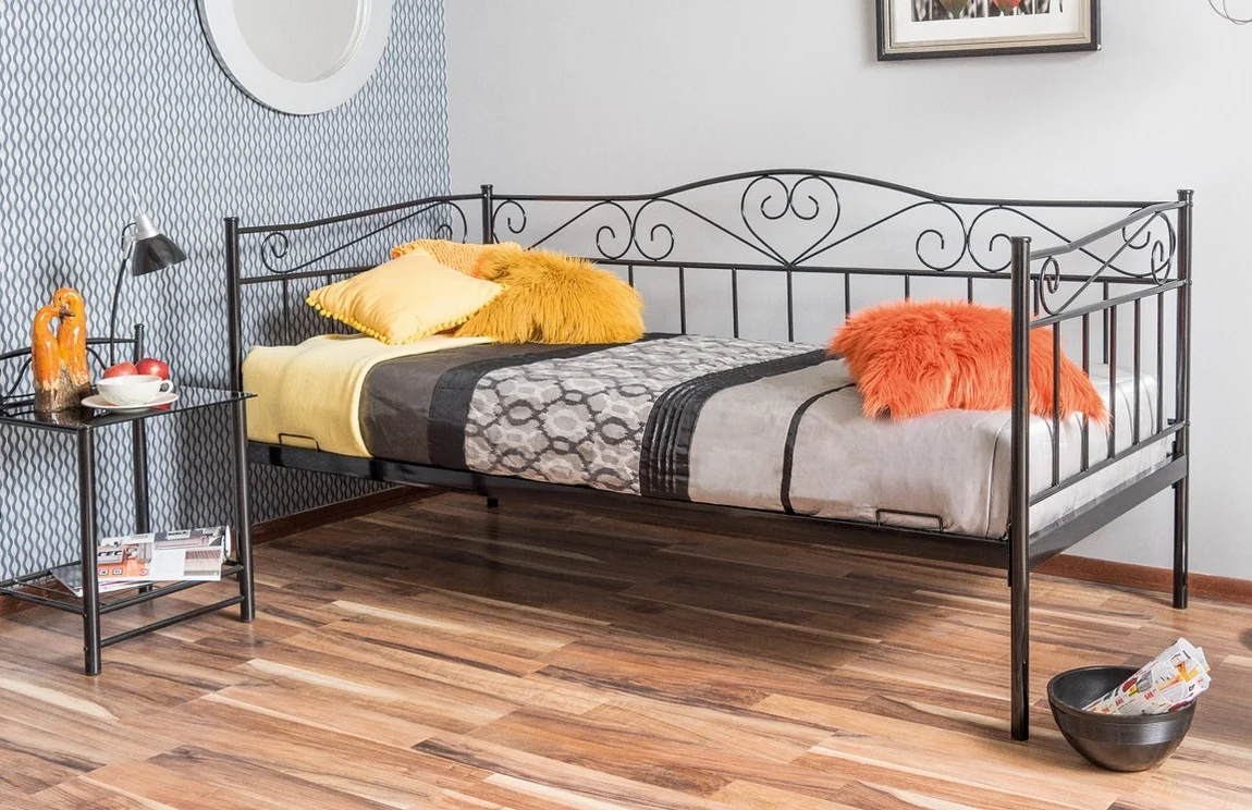 Elegantní kovová konstrukce v černé barvě působí nadčasově a dodává posteli stylový vzhled do každé ložnice. V ceně je pevný rošt a rozměr pro spaní 90×200 cm, matraci lze doobjednat jako volitelnou položku. Rozměry samotné postele: šířka 96 cm, hloubka 208 cm a výška 97 cm, přičemž rošt je ve výšce asi 34 cm nad podlahou. Materiál je kov a dodává se v demontovaném stavu; záruka je 24 měsíců. Díky svému neutrálnímu designu se hodí do různých interiérů a jednoduše ji sladíte s dalším nábytkem, navíc její montáž je rychlá a nenáročná.