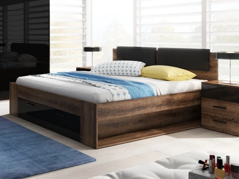 Postel ZANDER 180x200 cm dub monastery / černý lesk Postele