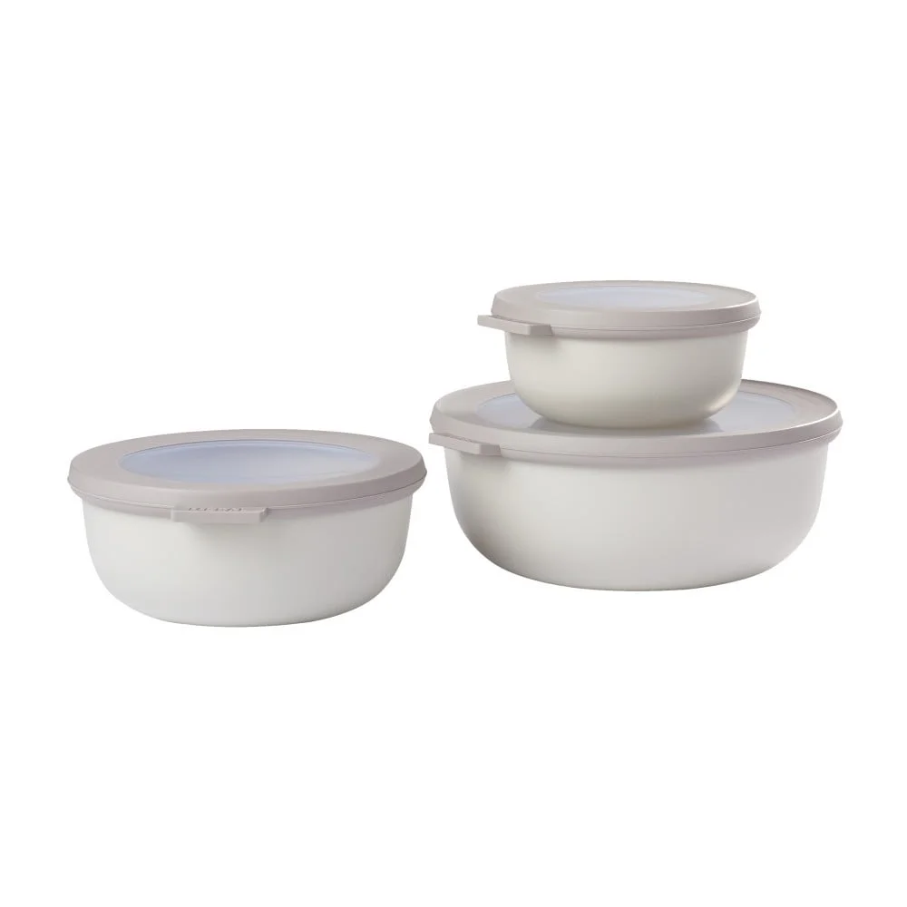 Souprava tří praktických potravinových krabiček Cirqula od Mepal je ideální volbou pro přenášení jídla do práce, školy nebo na výlety. Každá krabička nabízí odlišnou velikost – od kompaktního boxu s objemem 350 ml, přes střední variantu s kapacitou 750 ml, až po větší box s objemem 1250 ml, který pojme větší porci.