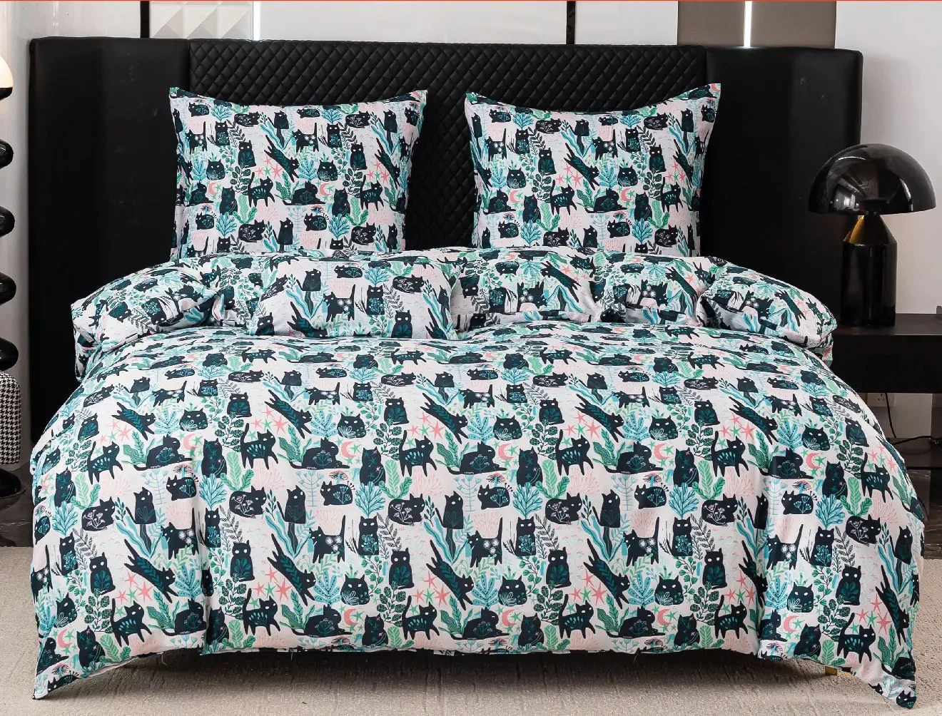 Oblíbené mikrovláknové povlečení s originálním motivem koček, které přidá do vaší ložnice hravý a stylový prvek. Vyrobené z jemného, hebkého a tvarově stálého polyesterového materiálu, je toto povlečení ideální volbou pro alergiky, děti i všechny, kdo ocení jednoduchou údržbu a komfort.