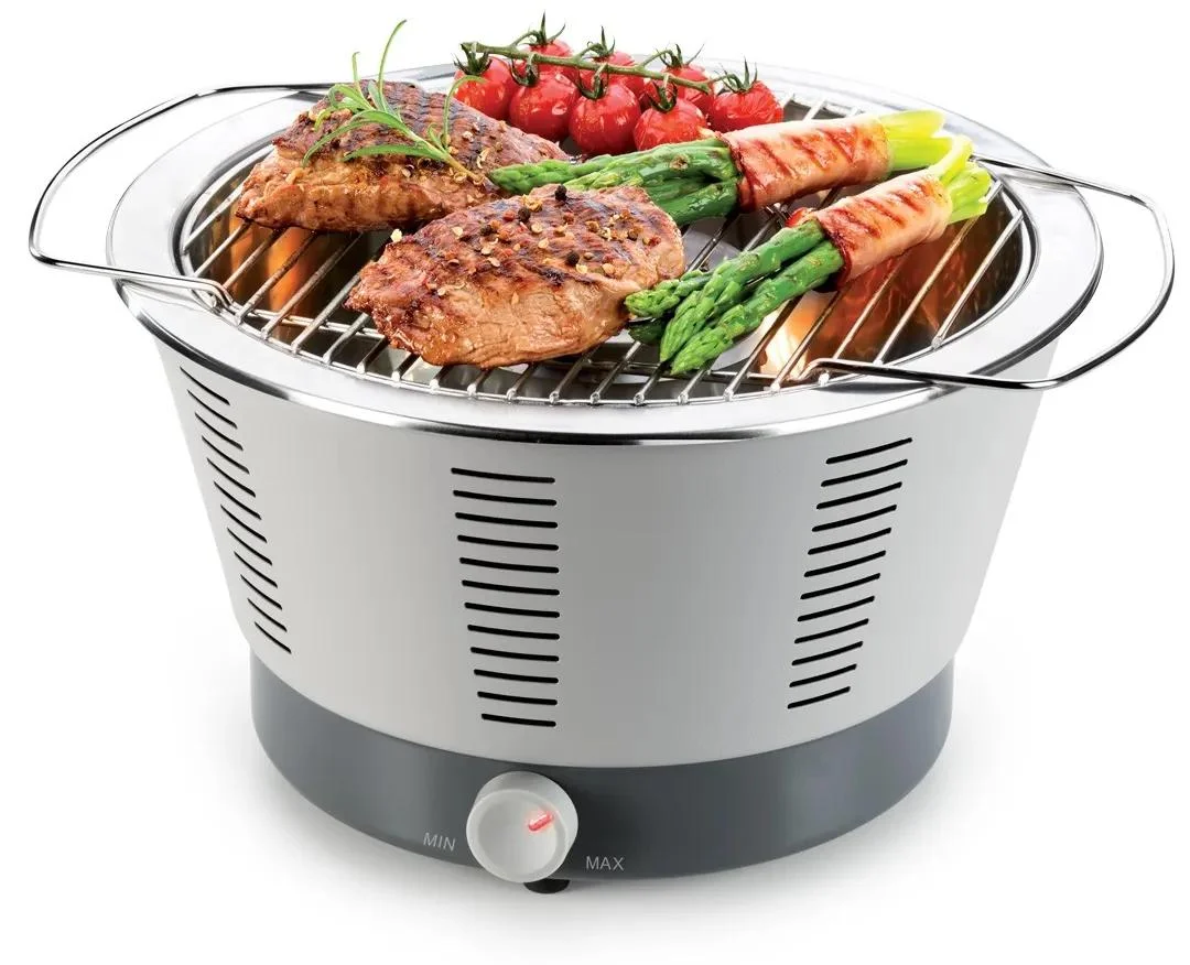 Objevte kompaktní a efektivní přenosný gril, ideální pro zahradu, balkon, piknik nebo pláž. Tento moderní model je vybaven ventilátorem, který výrazně usnadňuje a zrychluje přípravu pokrmů, a zároveň minimalizuje kouření během grilování.