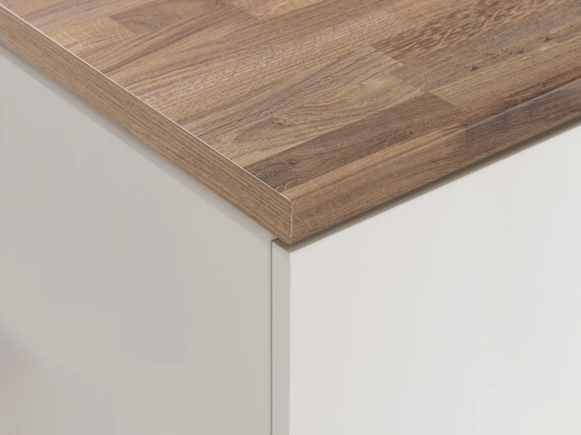 Deska je vyrobena z dřevotřískové desky s odolným laminovaným povrchem a PVC hranou v barvě desky. Záruka 24 měsíců. Vlastní délka na míru zajistí perfektní sladění s vaším prostorem, odolný laminát pak usnadní každodenní údržbu.