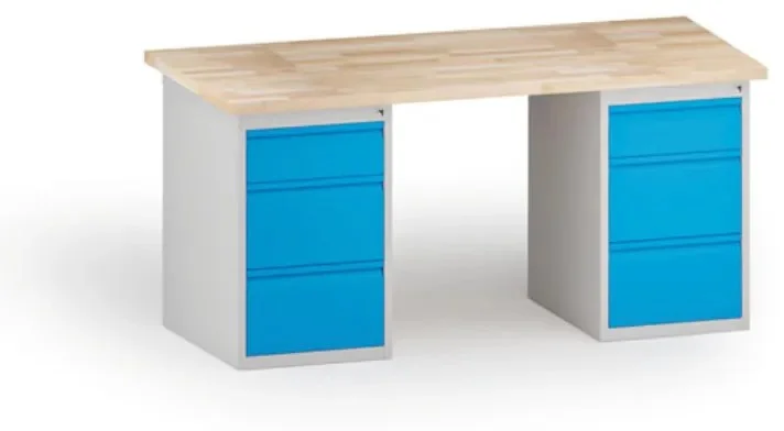 Robustní dílenský stůl s pracovní deskou z masivní bukové spárovky o tloušťce 40 mm nabízí vysokou stabilitu a pevnost, ideální pro náročné práce. Díky své váze a pevné konstrukci zaručuje bezhlučný a bezpečný provoz i při intenzivním využívání.