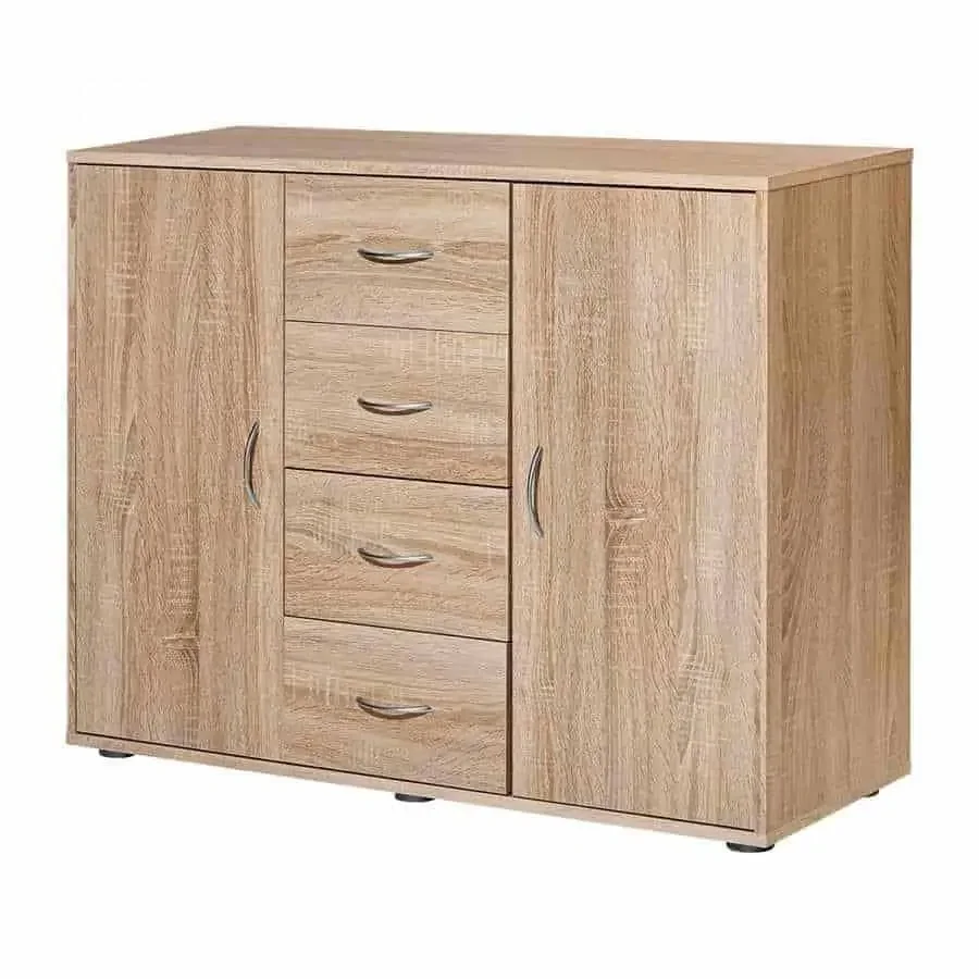 Do čtyř zásuvek a dvou dveří se vejdou širší i menší předměty; za dveřmi se nacházejí dvě variabilní police, které je možné výškově upravit podle potřeby. Hloubka zásuvek činí 30 cm, což umožňuje pohodlné třídění a skladování. Celá jednotka nabízí výrazný úložný prostor a je dodávána v demontovaném stavu pro snadnou přepravu a montáž. Praktický úložný systém pro organizovaný domov a jemný design, který se hodí do každé místnosti.