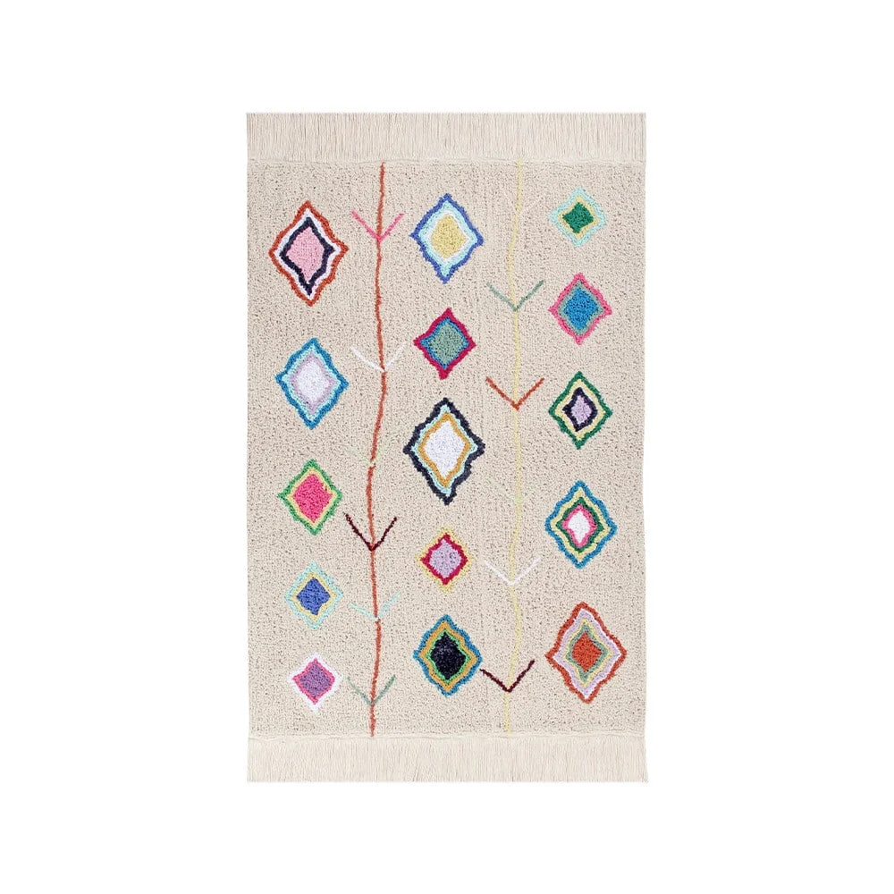 Objevte autentický bohémský design tohoto ručně tkaného bavlněného koberce od značky Lorena Canals, který je díky svému unikátnímu vzoru a kombinaci až 18 různých barev skutečně originální.