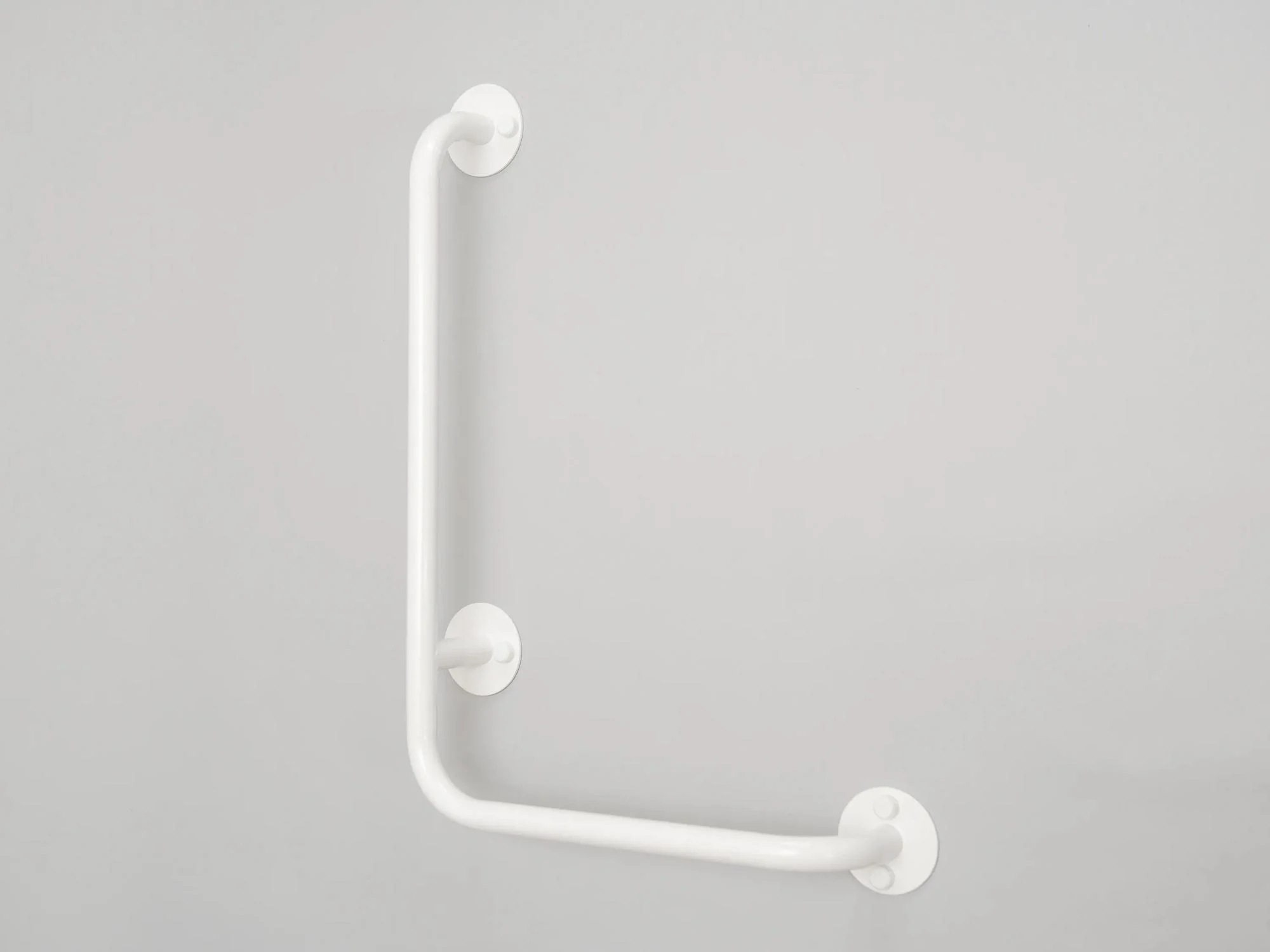 Toto pravé lomené madlo ve tvaru písmene 'L' nabízí zvýšenou bezpečnost a stabilitu při sprchování nebo při přechodu do vany. S rozměry 50 x 50 cm a průměrem 25 mm je ideální pro instalaci v různých prostorách a lze jej umístit v libovolné poloze na stěnu.