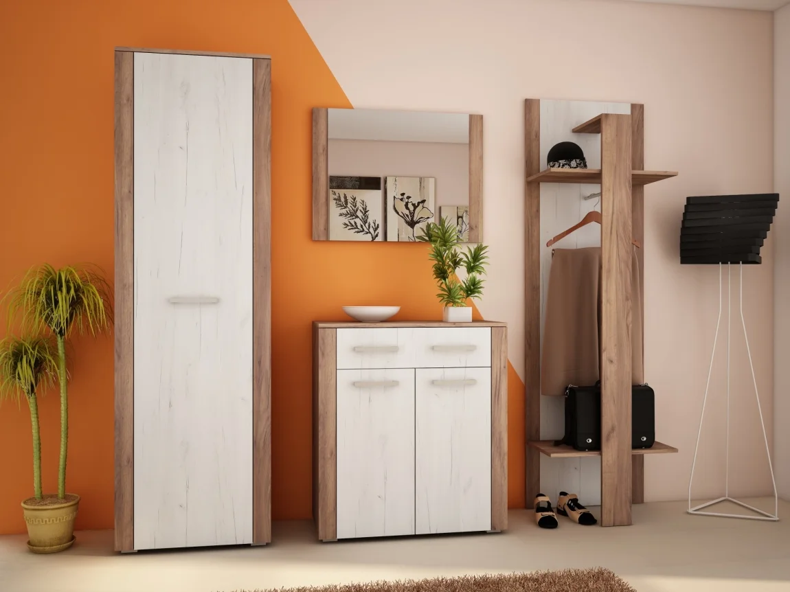 Sestava ARDENO v odstínech craft tobaco a craft bílá dodá vaší předsíni moderní a nadčasový vzhled. V jejím rámci najdete komodu, šatní skříň a stylově řešený věšák pro praktické uschování i snadný přístup k věcem. Desky jsou z LTD o tloušťce 16 mm, což zajišťuje pevnost i odolnost povrchu. Celkové rozměry činí 200 × 198 × 38 cm, takže zabere dost místa, ale zároveň působí vzdušně. Dodává se v demontu a na výrobek se vztahuje záruka 5 let.