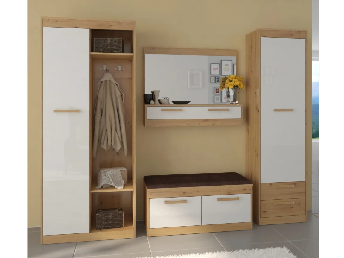Předsíňová stěna GATTON 1 – dub burgundský/bílý lesk, 5 let záruka Předsíňové stěny