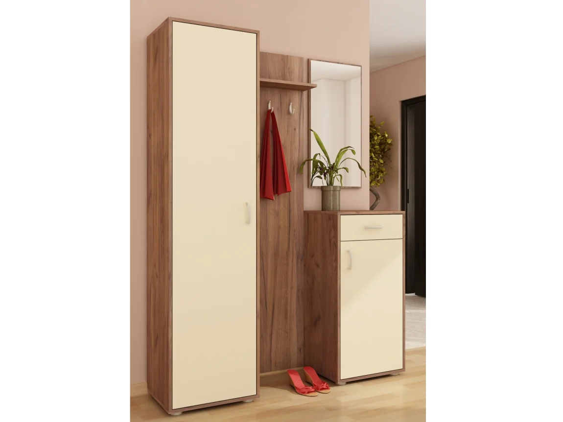 Stylová předsíňová stěna MELTON v provedení craft tobaco/krém přináší moderní vzhled a praktické řešení pro ukládání věcí v vstupním prostoru. Je vyrobena z desek LTD o tloušťce LTD 16 mm, což zaručuje pevnost a dlouhou životnost. Rozměry celku činí 141 × 187 × 37 cm, díky čemuž nabídne dostatek úložného prostoru a pohodlný přístup. Dodává se v demontu, což usnadňuje přepravu a montáž u vás doma. Záruka na tento výrobek je 5 let, takže se můžete spolehnout na kvalitu a bezstarostné užívání. Pro lepší využití prostoru doporučujeme kombinovat s doplňky, jako jsou věšáky či botníky, a doplnit osvětlení, které prostor vizuálně zvětší a zútulní.