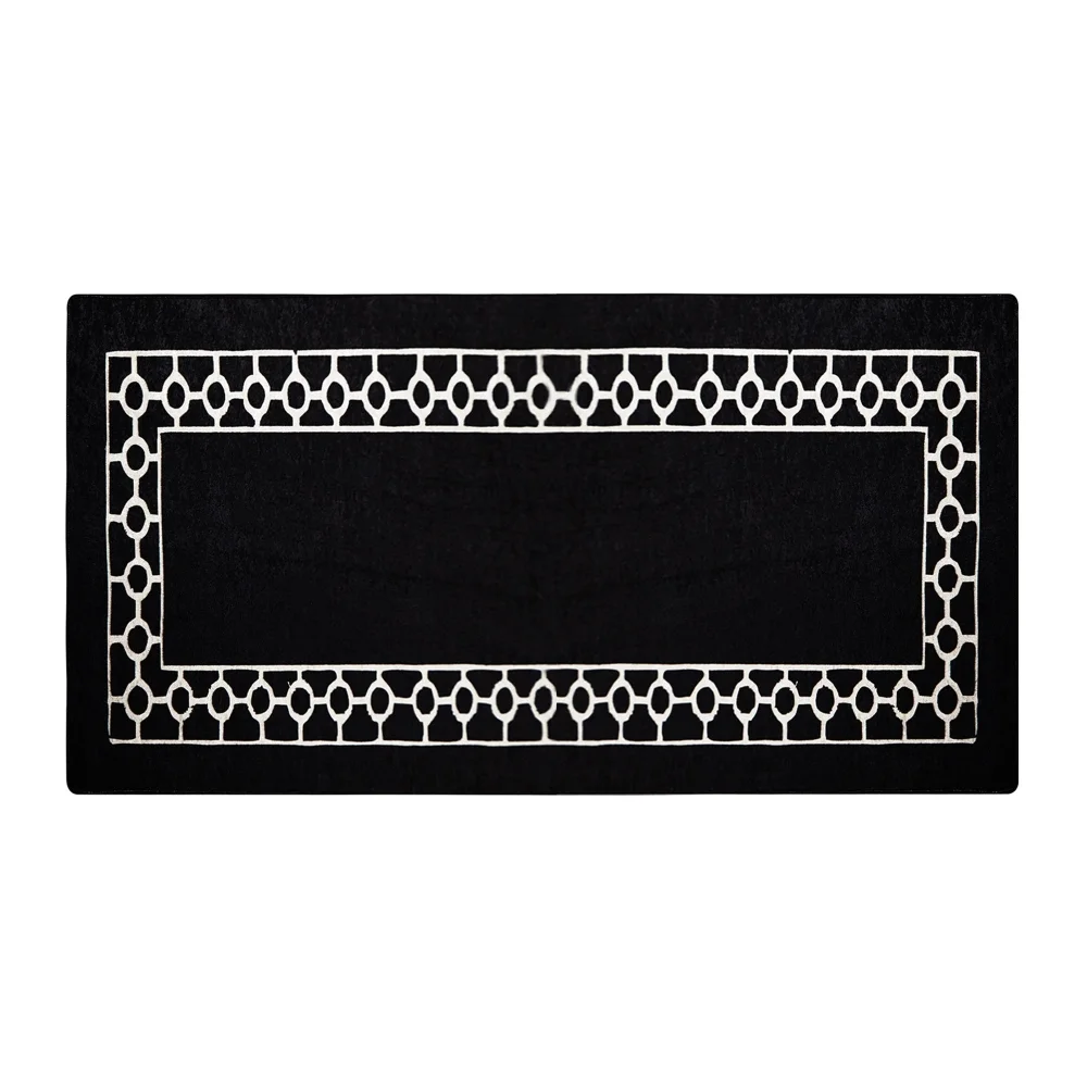 Materiál: 100% polyester; výška vlasu 4 mm a celková tloušťka 10 mm zajišťují jemný došlap a příjemný pocit pod nohama. Protiskluzová spodní strana zajišťuje bezpečné používání a stabilitu i na kluzkých podkladech. Antibakteriální úprava podporuje hygienu v domácnostech s dětmi a domácími mazlíčky; možnost praní na 30 °C usnadňuje údržbu. Technické parametry: hmotnost 700 g/m², výška základny 2 mm, barva černá/bílá. Tento koberec je vhodný pro každodenní provoz a do každé předsíňové zóny dodá styl, komfort a dlouhou životnost. Díky vysoké odolnosti je ideální volbou pro frekventované chodby. Péče o koberec je snadná — stačí vyprat na 30 °C a vydrží vám dlouho vypadat skvěle.