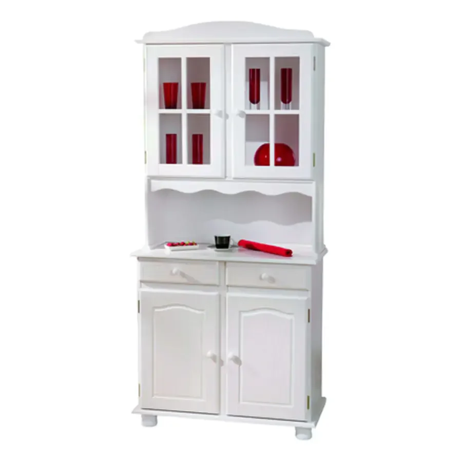 Příborník VALENCIA v čisté bílé variantě prosvětlí jídelnu i kuchyni a dodá jí útulný nádech. Je vyroben z masivní borovice a nabízí nejen velký úložný prostor, ale i místo pro vystavení krásného nádobí. Ve spodní sekci najdete dvě plná dvířka a dvě zásuvky s kovovými pojezdy; do skříňky lze uložit hrnce či jiné nádobí, které nechcete mít na očích. Zásuvky slouží i pro drobnosti a příbory. V horní části jsou dvě prosklená dvířka, za nimiž vypadají vaší špičkové sady nádoby skvěle. Dodáváno v demontu pro snadnou montáž a přepravu. Skvěle doplňuje moderní i tradiční kuchyni a snadno se sladí s dalším nábytkem. Nezapomeňte prohlédnout naši nabídku kuchyňských doplňků, které můžete kombinovat se tímto kouskem.