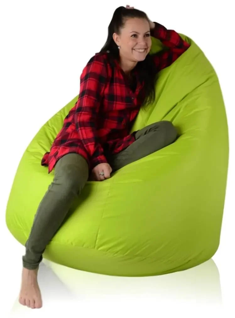 Praktický a prostorný vak Giga Sako Nylon v osvěžující limetkové barvě je ideální volbou pro větší osoby, které hledají komfortní místo k sezení i odpočinku. Tento model nabízí univerzální využití - díky svému tvaru kapky poskytuje pohodlí při sezení, ležení i relaxaci.