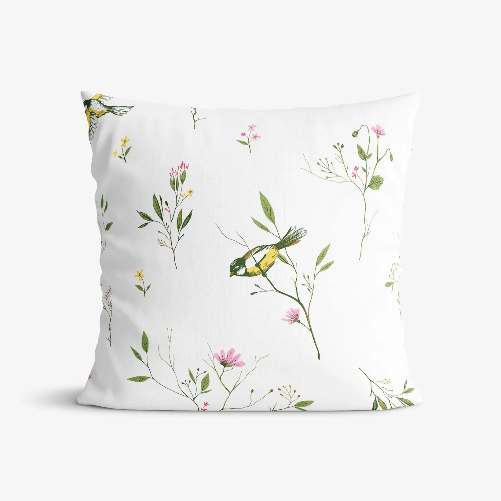 Obohaťte svůj interiér o přírodní atmosféru s tímto bavlněným povlakem na polštář zdobeným jarním motivem lučního kvítí a sýkorek. Vyroben z vysoce kvalitní, jemné 100% bavlny, která je příjemná na dotek a zajišťuje pohodlí při relaxaci.