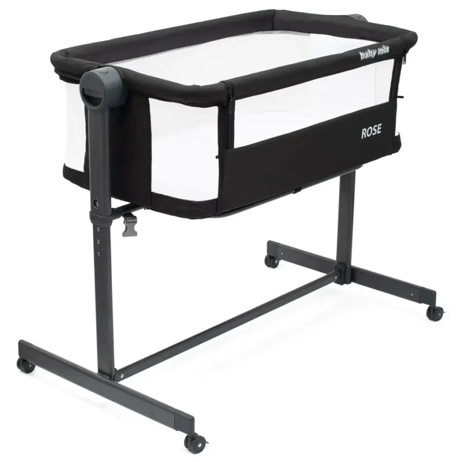 Praktická přístavná postýlka Baby Mix Rose v elegantním černém provedení se stane spolehlivým doplňkem dětské výbavy. Díky variabilní výšce ji lze pohodlně sladit s manželskou postelí a zajistit bezpečný dohled během noci.