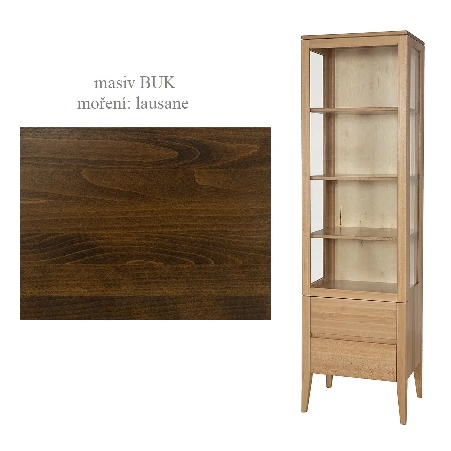 Prosklená vitrína FAUCARIA – levá, masivní buk, moření lausane Regály